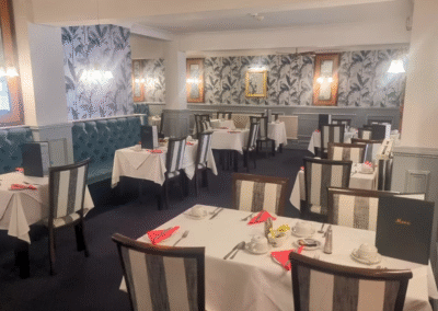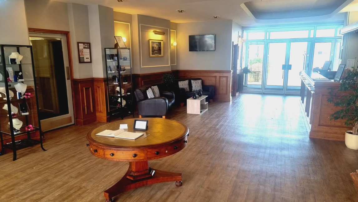 Amenities include a heated indoor pool, coffee shop, bar, Canadian pine sprung dance floor, games room, restaurant, and evening entertainment. The hotel is licensed for civil weddings and hosts business meetings.